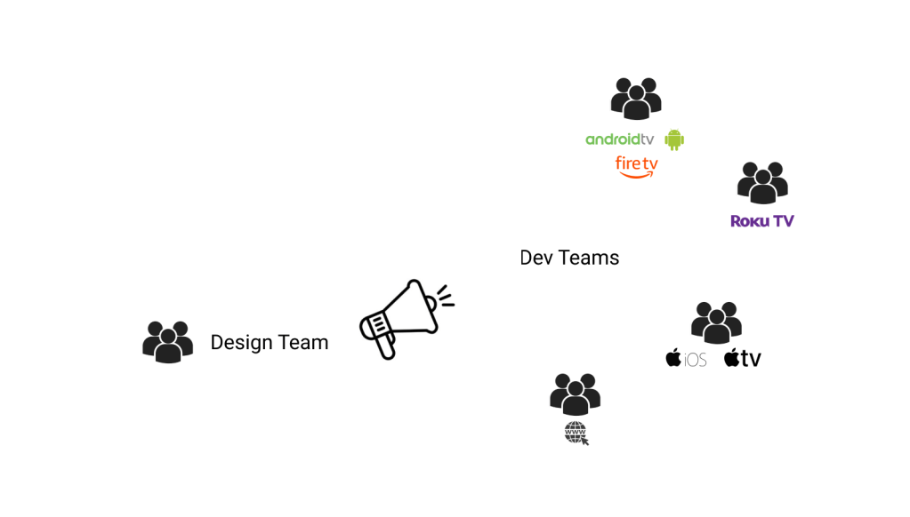 We, the design team, worked with several dev teams, each managing one or three platforms.