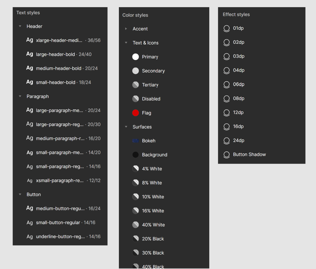 We started with simple colour and text styles, and kept evolving as we build more screens and features. We didn’t just capture colours and text styles, but also documented when and where they should be used. Scalability without chaos!