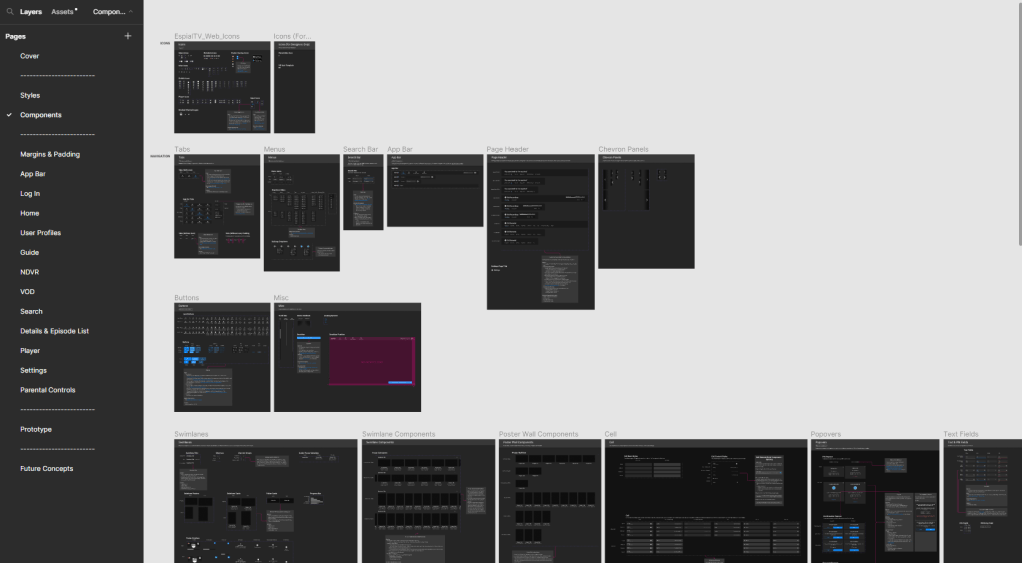 Gradually, more pages were added to our Figma file. This is what Components page for Web platform looked like: