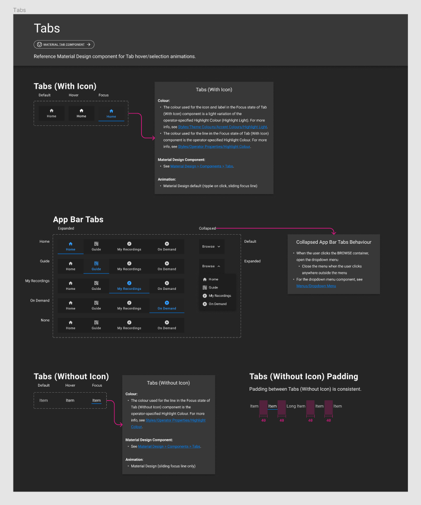 We used Zeplin to share designs and design specs to our dev teams and documented explanations, scenarios on Confluence. Developers had to go to two different places for one piece of info. This isn’t ideal. Documentation needs to live where design is.